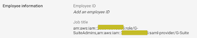 Now back to the G-Suite Admin Console to update the “Job Title” attribute with two ARN values.